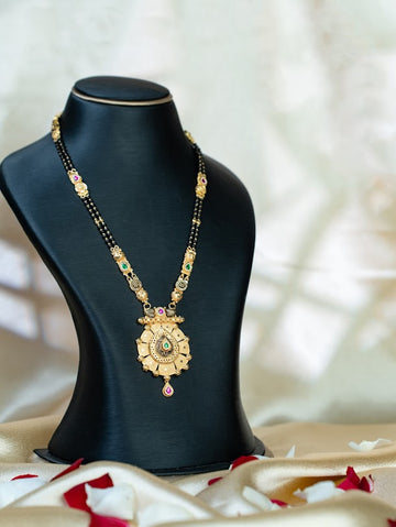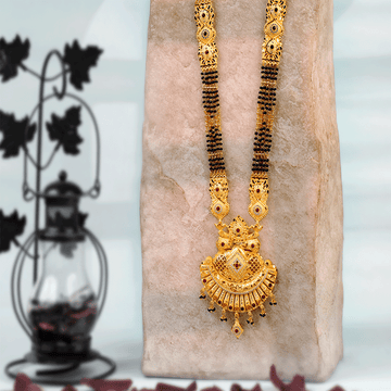 and mantras. Over time, it evolved into the familiar gold-and-black beaded form — gold for purity and prosperity, black to ward off negativity.