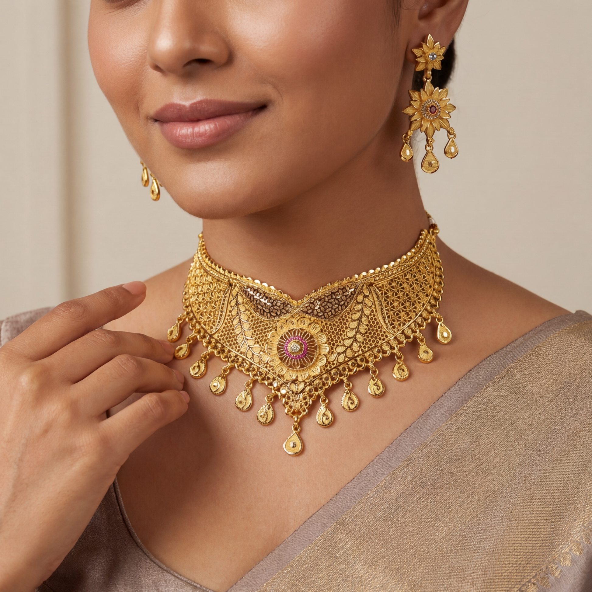 The Ritvaa Peshwai Royal Choker Set captures the grandeur of Peshwai heritage, crafted to give you a truly regal and timeless bridal presence.