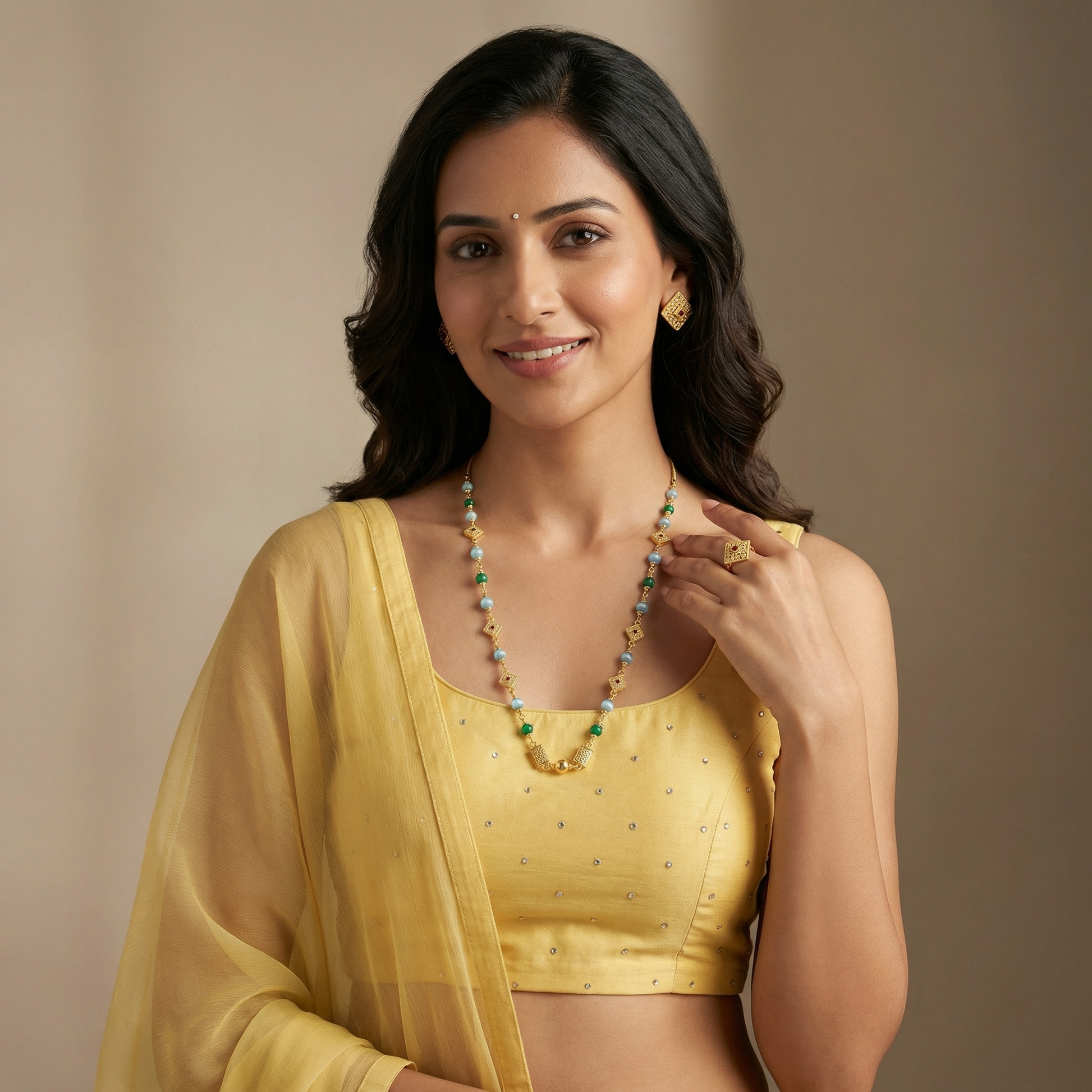 A true celebration of beauty, Ritvaa Saundarya Mala showcases timeless elegance and premium craftsmanship. Its graceful design makes it a must-have for every jewellery lover.